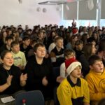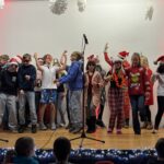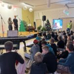 „O du fröhliche Gerhart-Hauptmann-Schule“ – unter dieses Motto hätte man wohl das abwechslungsreiche Weihnachtsprogramm vom letzten Schultag vor den Weihnachtsferien, dem 19. Dezember 2025 stellen können. Unser Musiklehrer und selbsternannter Konzertmeister Herr Kranzl hat wieder ein großartiges Programm auf die Beine gestellt. Eröffnet wurde dies durch Lukas Heß aus der Klasse 5b mit einem Trompetensolo. Die folgende Stunde war gefüllt mit abwechslungsreichen Darbietungen der Klasse 6a mit einem Tanz und Flachwitz-Sketches, mit einer Tanzeinlage der Klasse 6b, mit Liedern des Akkordeonquartetts aus Schülern der 6. und 7. Klassen, mit dem seit diesem Schuljahr vergrößerten Schulchor, mit einem lustigen Gedicht von Anna Heß und Finn Heßler – unterstützt durch Franz Frischmuth (10a) und als Überraschung und kleines Highlight mit dem Klassiker „Last Christmas“ – performt durch Herrn Kranzl und Herrn Langbein. Durch das Programm führten gekonnt die Moderatoren Alia Truckenbrodt und Franz Matern (10b).