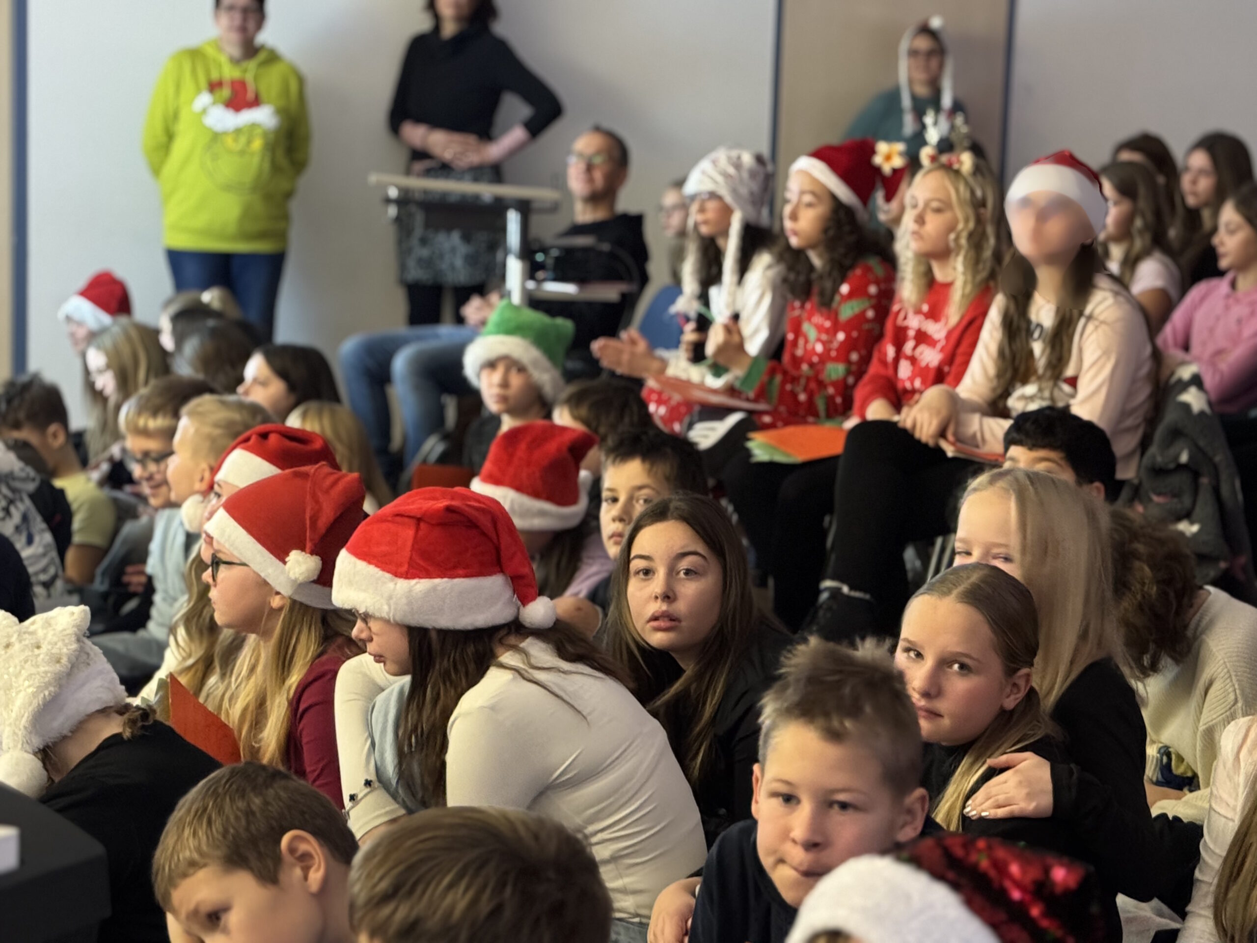 Im Anschluss ließen dann alle Klassen das Jahr gemeinsam bei Kinderpunsch, Waffeln und Plätzchen ausklingen und steigerten damit die Vorfreude auf den Weihnachtsmann und vor allem die Ferien.
